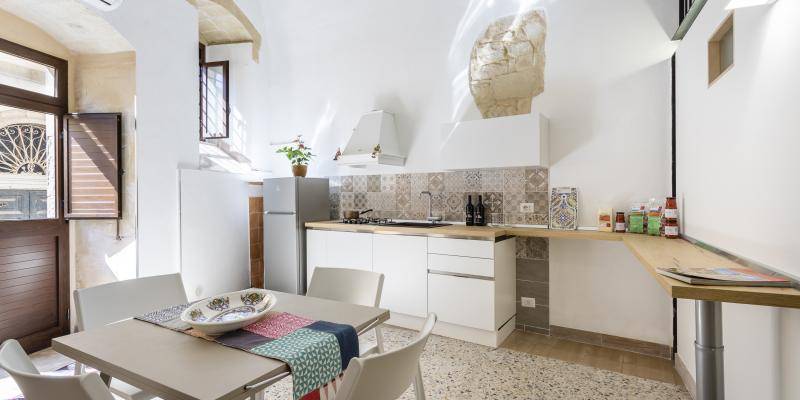 Luogo di racconti, detti popolari, aneddoti seduti attorno a un tavolo su cui non doveva mancare mai la bottiglia del vino, pane e cumpanagghiu (companatico). Oggi è stato trasformato in una comoda e confortevole casa. I 33mq di Casa Maria sono stati arredati con stile e attenzione a che ci fosse il necessario per una bella vacanza.